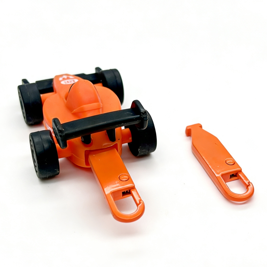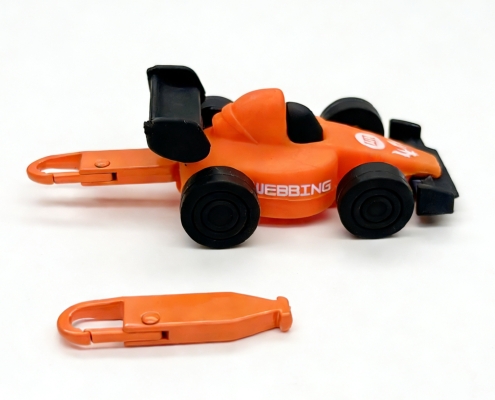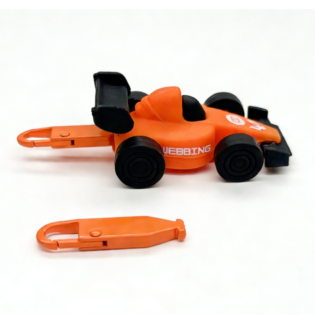 This Racing Car Interchangable Puller a dynamic racing car design with a sporty look. The special clip structure allows quick and effortless replacement without force, making it easy to switch styles and add a bold accent to everyday items.