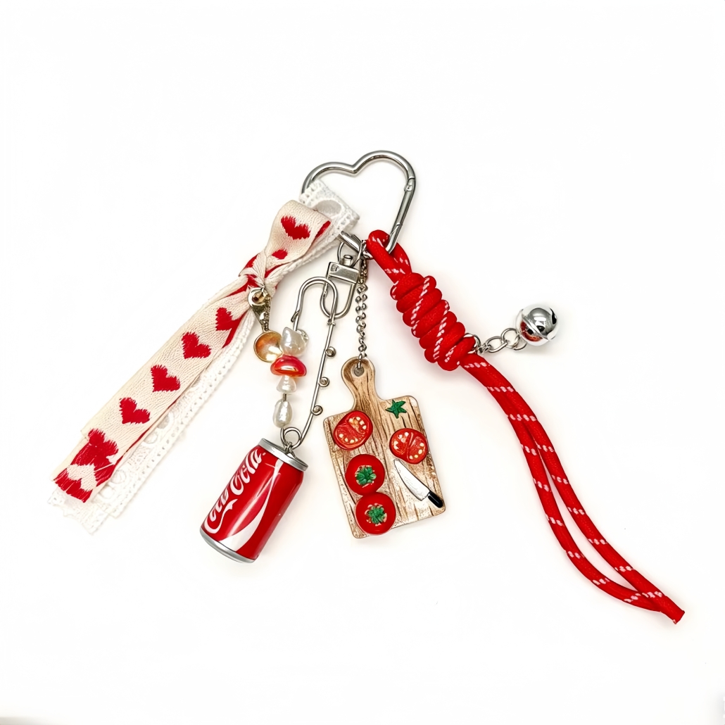 This Tomato Cottagecore Keychain blends playful charm with a rustic, countryside aesthetic. Featuring tomato-themed charms and soft textile elements, it adds a warm, handmade touch to your keys, bags, or accessories.